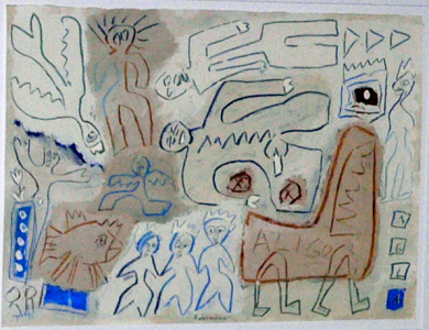 Im weiteren zeigt Rabemann in dieser Ausstellung z.B. auch ein Bild wie „Das Wort am Ort“, das auf den biblischen Beginn der Schöpfung („Im Anfang war das Wort“) Bezug nimmt …